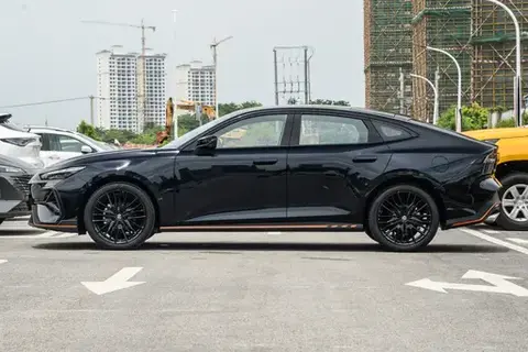 车身侧面,半隐藏式门把手的设计不仅增添了科技感,还让车身线条更加简洁流畅。全新的 19 英寸熏黑轮毂搭配橙色刹车卡钳,形成了强烈的视觉对比,运动氛围直接拉满,就像是蓄势待发的运动员,随时准备起跑。侧裙处的橙色饰条,更是起到了画龙点睛的作用,为整车增添了一份灵动与活力。