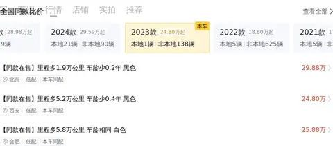 看完了车辆的表现,接下来咱们聊聊大家最关心的价格部分。二手车的价格跟车辆的状况有直接关系,包括车龄、里程以及外观内饰的保养程度等。我们统计了当前二手车市场中,同款车型的售价情况,以便让您更好地评估这辆车的价值。