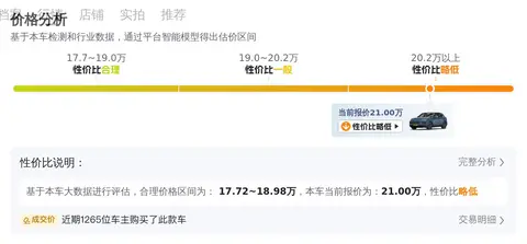 根据大数据预估显示,这辆车的市场行情在19.75万至24.25万之间。具体的价格因车辆的车龄、里程以及保养情况等不同情况而定,而本车21万的报价则基本上符合市场价。