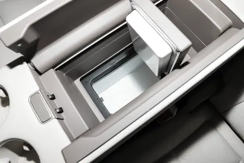 坐在前排,我们可以看到中控扶手箱和手套箱。副仪表台下方还挖出了一个大的空位,可以用来放女生的包包,放零食也是可以的。前排置物空间还可以。打开中控扶手箱,我发现有彩蛋。这个扶手箱不但能放日常小物件。将底部的盖板拉开,底部原来还有一个冰箱。惊喜不惊喜?这个冰箱还挺大的,放8瓶易拉罐可乐是没有问题的。夏天出门可以随时喝上冰镇饮料,还是很幸福的。这个冰箱,不但可以从扶手箱打开。还可以从后方拉开。无论前排还是后排乘客,用起来都很方便。