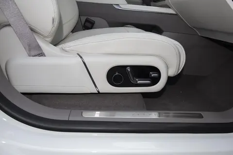 真没想到,极氪7X定位是中型SUV,但它4825mm的车长加上2925mm的轴距,显然已经接近一些大型SUV了。我实际走到车旁,第一感觉这车比例匀称,没有传统大SUV那种笨重感。短前悬的设计也让前脸更紧凑,停车、转弯都更灵活。最让我心动的是这车的空间利用率,得房率超过83%,实际进去坐才知道,这车内部空间真的大得超出我的预料。身高178cm的我,及父亲180cm的身高,我们前后排都体验了一番,前排主驾驶调到正常驾驶位置,后排我们还能轻松翘腿,膝盖距前排靠背有两拳多余量,头部不会顶到顶棚,左右横向宽度也很充裕。后排坐三个人,我们三个成年人坐着,没有一丝的拥挤感,长途坐着也不累。地板纯平,不管是坐中间还是两侧都很友好,这点特别适合家里有孩子的,安装儿童安全座椅不会影响中间乘客的舒适度。