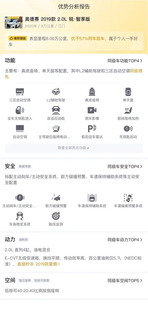 综上所述的新车含税价、用车成本、市场行情、优势分析、同款比价等数据仅供参考。在配置部分,因为二手车非标品,车辆可能会存在配置改装的情况,具体车况信息需要线下结合车辆实际情况进行综合参考。