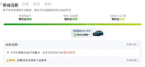 报价合理,因为它的售价位于同等车价的中等水平,10.70万的售价,按照estpark的评估,车况正常情况下,该车的市场价在9.82万-12.27万之间。