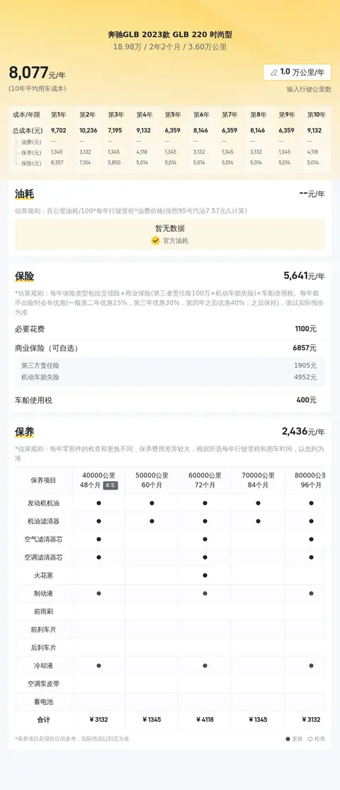 这款车百公里油耗大约在7.9升左右,十年平均用车成本大约为每年1.3万元,这个用车成本在同级别车型里面处于适中的水准,对于一辆豪华品牌的SUV来说,这样的用车成本还是可以接受的。