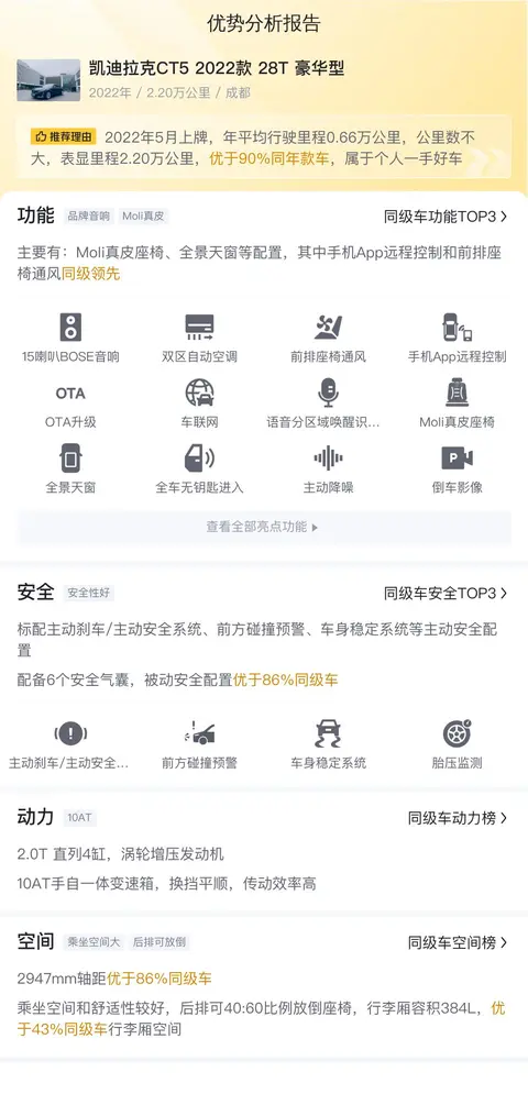 综上所述的新车含税价、用车成本、市场行情、优势分析、同款比价等数据仅供参考。在配置部分,因为二手车非标品,车辆可能会存在配置改装的情况,具体车况信息需要线下结合车辆实际情况进行综合参考。