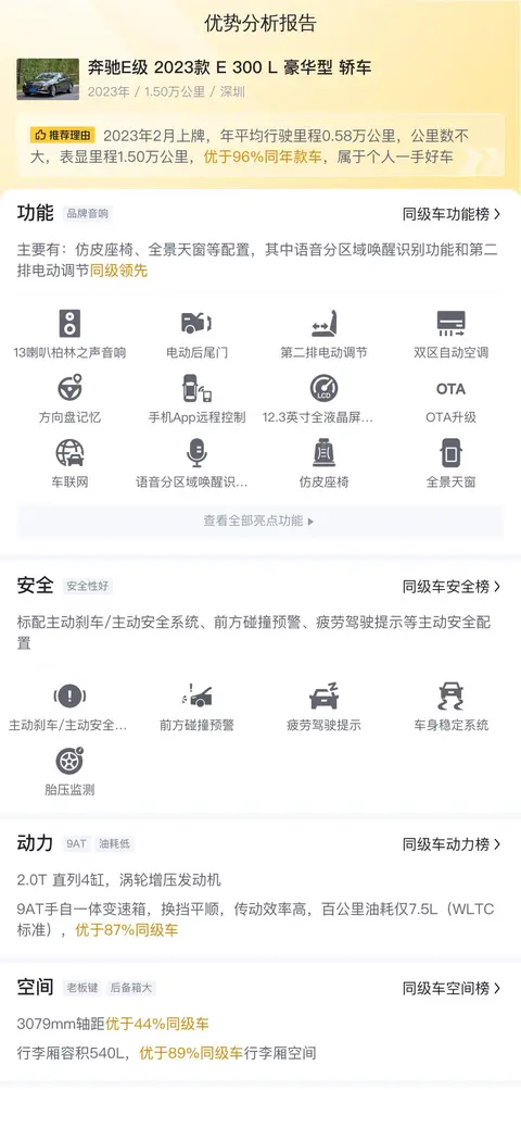 具体版本:奔驰E级 2023款 E 300 L 豪华型 轿车