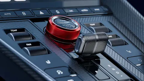 进入车内,DB12 S内饰整体保持了阿斯顿·马丁标志性的工艺感,但在细节上更注重性能氛围。新的红色阳极氧化金属驾驶模式旋钮、座椅靠背上印有“S”标识、可选三种不同风格的安全带与座椅包边和对比缝线配色;新车标配16向电动调节Sport Plus运动座椅,而可选碳纤维外壳的Performance竞技座椅则进一步减重。