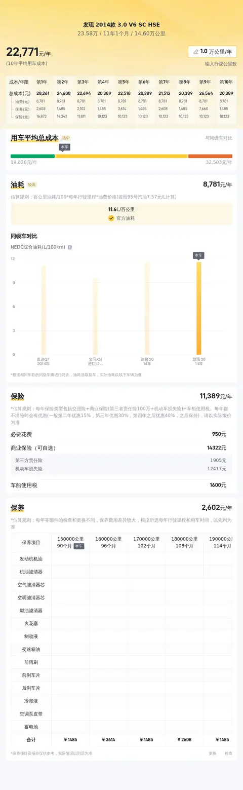 综上所述,这辆发现2014款3.0 V6 SC HSE在动力性能、空间舒适性、配置丰富度等方面均表现出色,是一款值得考虑的二手车。但是该车没有检测报告,车况不明,购买需谨慎。