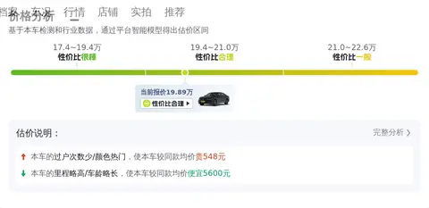 本车售价19.89万,市场行情价为15.65万-18.66万,价格较高,但保值率较高,因为它的保值率受市场认可度、品牌影响力、车型系列等因素正面影响。