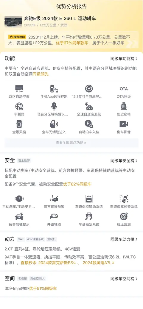 综上所述的新车含税价、用车成本、市场行情、优势分析、同款比价等数据仅供参考。在配置部分,因为二手车非标品,车辆可能会存在配置改装的情况,具体车况信息需要线下结合车辆实际情况进行综合参考。