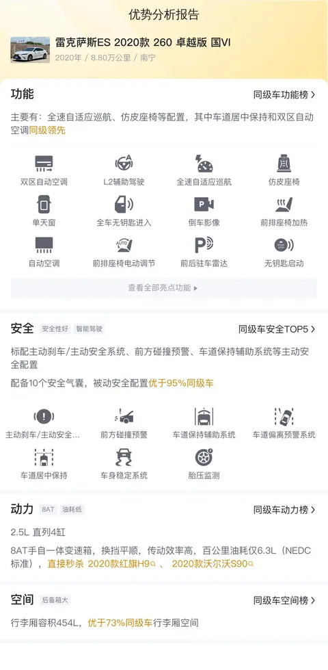 综上所述的新车含税价、用车成本、市场行情、优势分析、同款比价等数据仅供参考。在配置部分,因为二手车非标品,车辆可能会存在配置改装的情况,具体车况信息需要线下结合车辆实际情况进行综合参考。