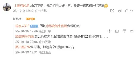 还有说山河不错的,揽尽祖国大好山河,需要一辆靠得住的好车。