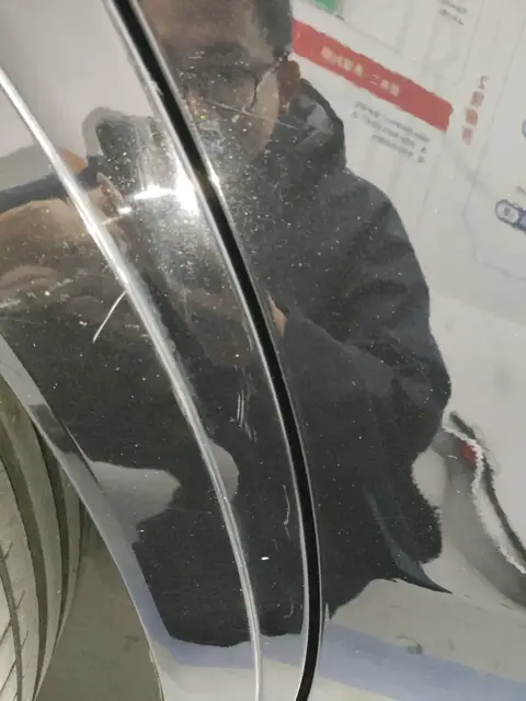 在外观检测部分,这辆车的表现一般,可能是前任车主的驾驶技术一般,或者对车辆使用并不是很爱惜。在众多瑕疵中,比较明显的有右后翼子板的划痕,不过这个瑕疵不影响车辆美观和日常使用。