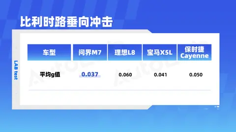 数据上,问界M7与理想L8的垂向冲击峰值都未超过0.8g,而Cayenne和X5L分别为0.88g和0.948g。