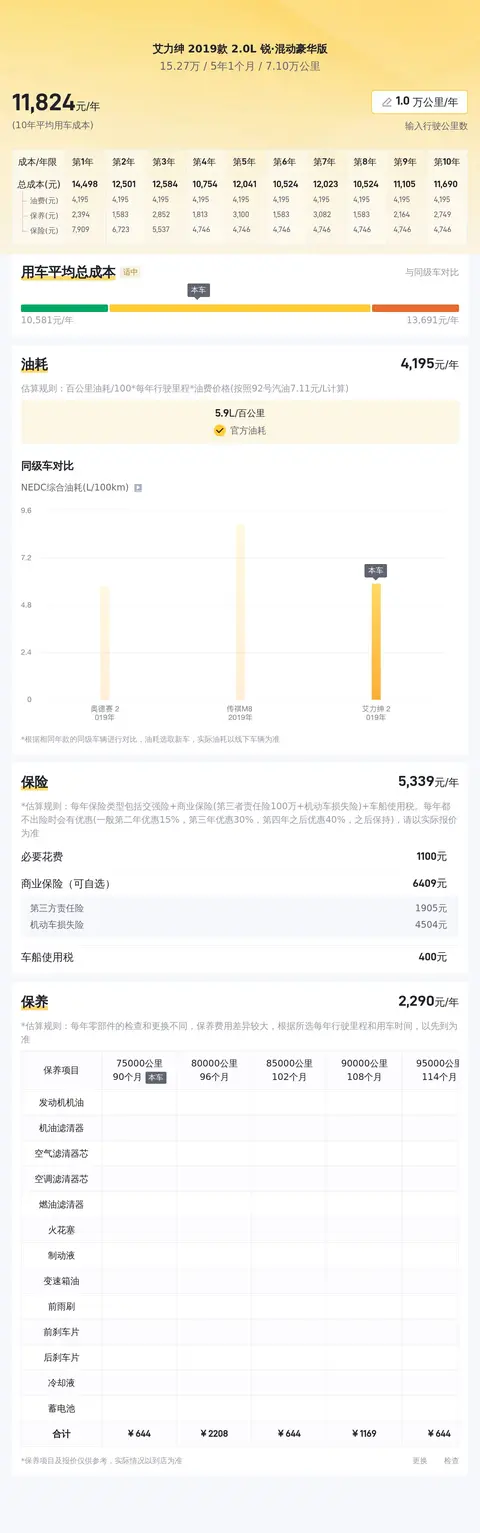 保养费用:预计每年的保养费用为1738元,定期保养是维持车辆良好状态和延长使用寿命的关键。