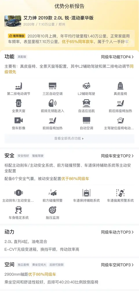 根据懂车帝大数据分析,艾力绅 2019款 2.0L 锐·混动豪华版在二手车市场中的价格区间为15.02万至18.22万,而本车的报价为15.27万,相较于其他年款,性价比突出。考虑到其保值率高于同级车均值,以及较低的用车成本(约12276元/年),本车是一款值得考虑的经济型选择。在选车时,请务必结合车况、里程、车龄等因素综合考量,做出最适合自己的选择。