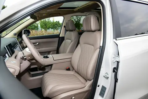 坐进车里感觉挺敞亮,头顶那块大天窗采光面积确实不错,打开后通风感觉很柔和。那个电动后备厢我觉得很实用,能设定开启高度避免磕碰,两手抱着东西时,用脚在车底感应一下就开了,很从容。原厂行车记录仪免去了后期布线的烦恼,跟车内环境融合得也好。手机随手放上去就能无线充电,50W的功率应对日常补电足够快,中控台利落多了。前窗的多层隔音玻璃对高速行驶时的静谧性有帮助,后窗的隐私玻璃也让家人乘坐时更安心。到了晚上,可以从256种颜色里选个喜欢的氛围灯,情调就上来了。自带的空气净化功能,对在意车内气味的人来说是个不错的配置。