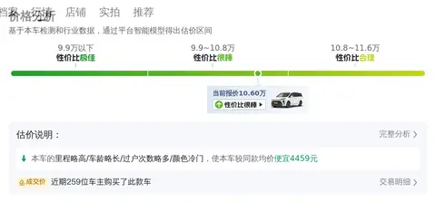 根据大数据预估显示,这辆车的市场出售价格在11.6万至14.16万之间,而该车目前的售价为10.6万,低于市场售价,是一个不错的选择。