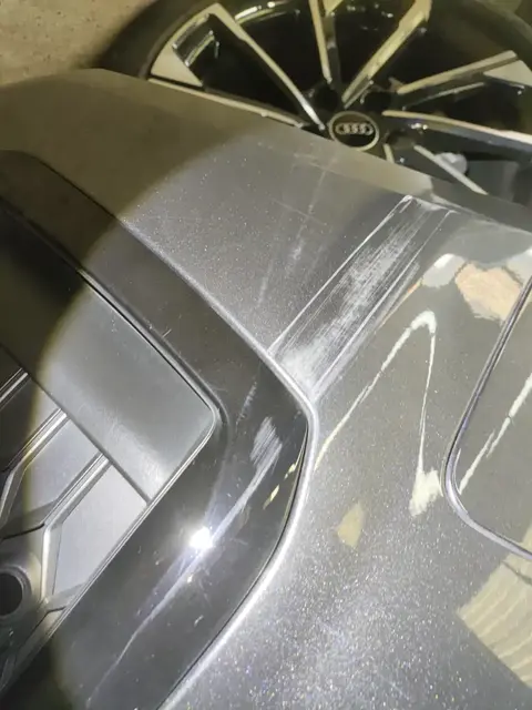 经过对汽车主要覆盖件检测,有4项问题需注意,具体是剐蹭:前保险杠、左后翼子板,喷漆修复:后保险杠,变形:右后翼子板。以下是瑕疵详细信息和实拍图。