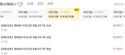 车源地和上牌地都在南京。2023年1月首次上牌,在此期间过户0次。新车含税价为108.89万,现在的二手车报价是81.8万,相当于开1年多便宜了27.09万。