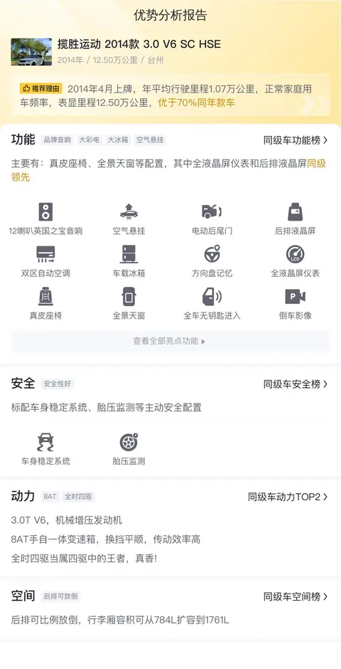 综上所述的新车含税价、用车成本、市场行情、优势分析、同款比价等数据仅供参考。在配置部分,因为二手车非标品,车辆可能会存在配置改装的情况,具体车况信息需要线下结合车辆实际情况进行综合参考。