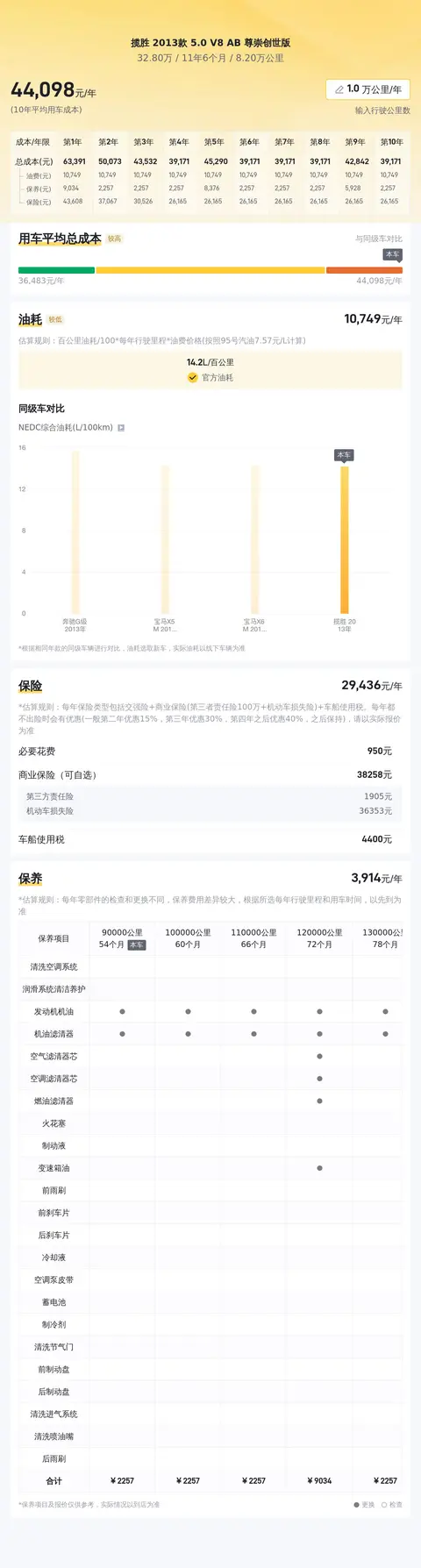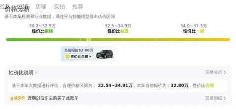 根据大数据分析,该车的市场价格在32.74万- 40.92万之间,具体价格因车况而异。此外,根据估算,该车的年均综合用车成本约为4.4万元,相较于同级车,用车成本较高,这一点需要购车者在购买前予以关注。