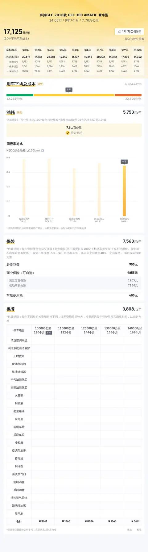 这辆车的年均综合用车成本大概在每年1.7万元左右,这项花销是跟车主的实际用车场景和使用强度有直接变化的。