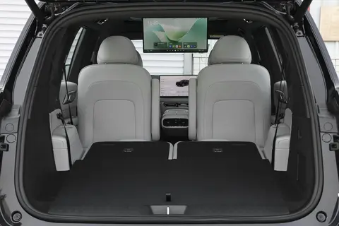 空间表现与乘坐舒适感,是深蓝S09针对家庭出行场景的核心优势所在。先来看座椅配置,进入第二排可以发现,这里并没有采用传统的连排座椅设计,而是配备了两张独立座椅——官方将其命名为“双零重力横滑座椅”。这两张座椅不仅支持电动调节靠背角度和腿托高度,能够实现接近平躺的舒适姿态,更具特色的是支持横向电动滑动功能。这一设计带来了灵活的空间使用场景:既可以将两张座椅靠拢,方便照顾老人或孩子;也可以将座椅向两侧滑动,留出宽敞的中央通道,便于第三排乘客上下车。对于有老人和小孩同行的家庭来说,这样的设计无疑提升了出行的便利性。此外,在第一排中央扶手后方,还配备了一个可前后电动伸缩的“移动中岛”,集成了储物格、杯架、充电接口等功能,部分配置版本还可选装冰箱。当“移动中岛”向后延伸时,就能成为服务后排乘客的便捷平台,取放物品、饮水、充电都无需前倾身体。春节返乡途中,给孩子温奶、为家人递点心饮料等操作都变得十分轻松,这种对车内空间互动性的考量,确实贴合家庭出行的实际需求。